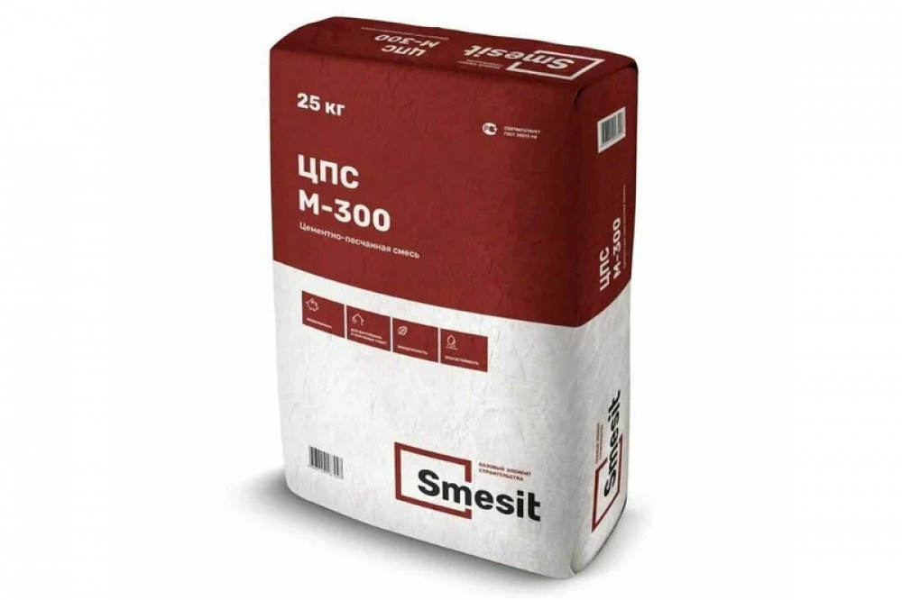 "М-300" Цементно -известковая смесь с добавлением полимерных добавок. Применяется как мелкозерн. бетон для заливки фундаментов, изготовлениния высокопрочных бетонных стяжек